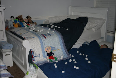 Finley and Dashel's Elves, Slapjack and Snowball, are visiting from the North Pole and look what they did! A snowball fight with all mom's cotton balls! http://www.elfingaround.com/
