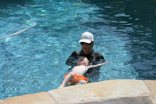 Fin started his third week of lessons today (we signed him up for three more this week since he was doing so well) and he can swim across the pool! He was even jumping off the side and swimming either back to the side or to the teacher. And working on floating too. Mom and Dad are SO PROUD! Someday I'll figure out how to get the videos onto here from our fancy camera :)