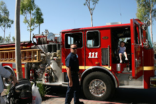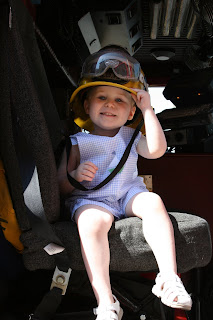 There was a FIRETRUCK parked outside the grocery store today! Pat the fireman was so nice he let me sit in it and even let me wear his hat! Mommy said it must have been because he knew I'd been so good at mass this morning...