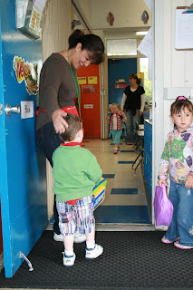 Miss Annette ushers the boys and girls into the class...