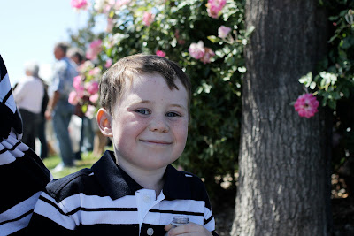 Hi,Kell does not look happy about this day out! On the other hand I would say all had a wonderful day.Keep the photos coming!Love, aunt Janet